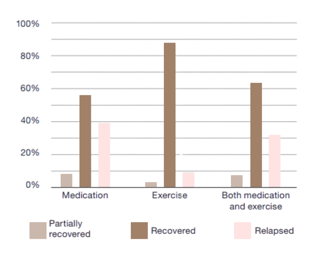 Diagram showing the clinical status 10 months after initiating treatment for depression.